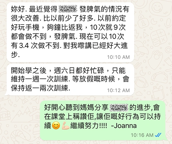 Parents reported he now can cultivate self-discipline and initiated to complete daily routines properly.